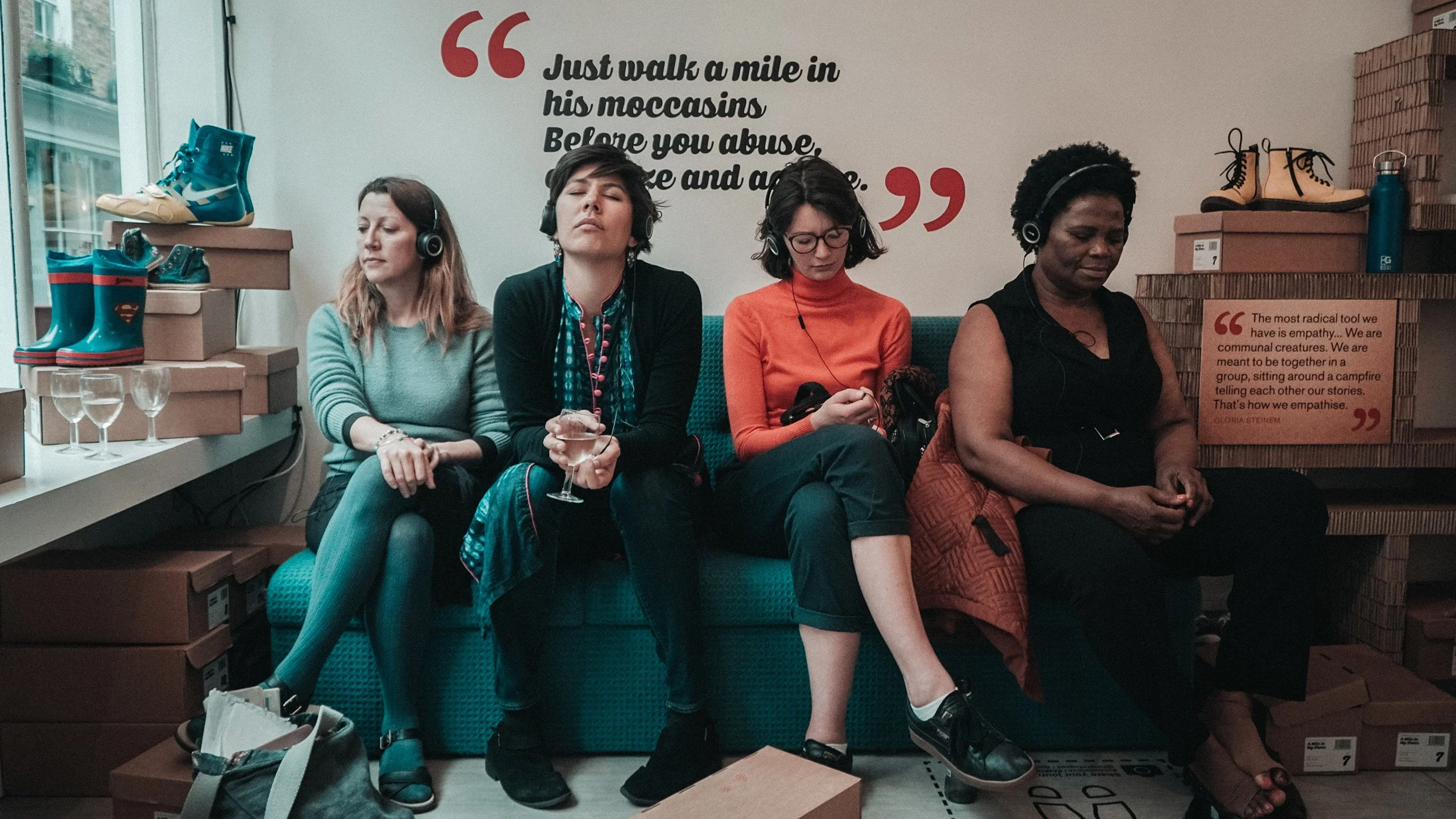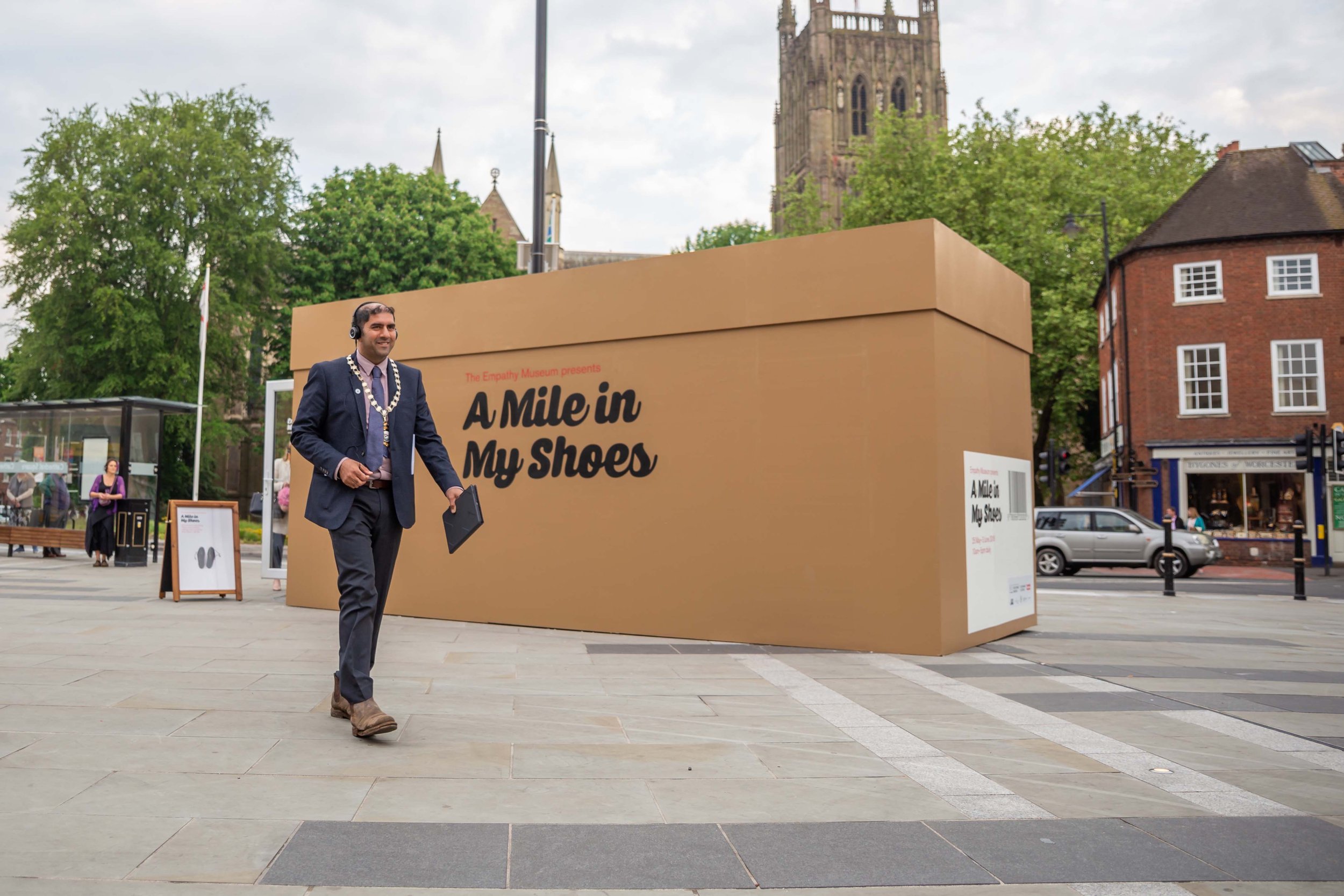 Its purpose is to help visitors view the world through the perspectives of others, putting on a pair of shoes and listening to the owners story through headphones.